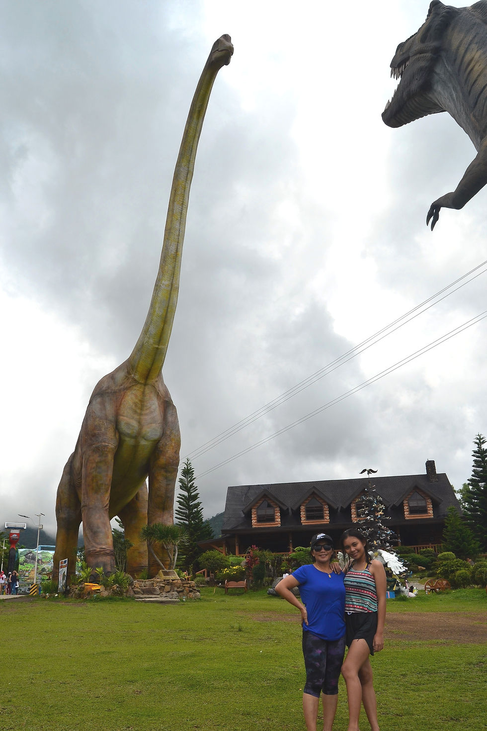 My lovely mother and I were photographed by my niece with one of the enormous dinosaurs at Campuestohan Highland Resort, June 9, 2019. Dinosaurs are one of the attractions at the resort.